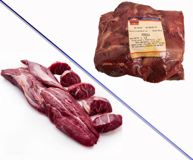 Pręga ze strusia to element podobny do pręgi wołowej. Polecamy ją wszystkim, którzy gustują w "mniej idealnych" rodzajach mięs. Podobnie jak pręga wołowa lub np golonko - w prędze strusia znajdują się liczne błony, przerosty itp. Przez to wymaga ona dłuższej obróbki termicznej. Jest jednym z nielicznych elementów, który nadaje się do przygotowania zupy.